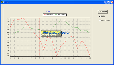 这是一个纯用TeeChart的Tools实现的简易游标Demo.