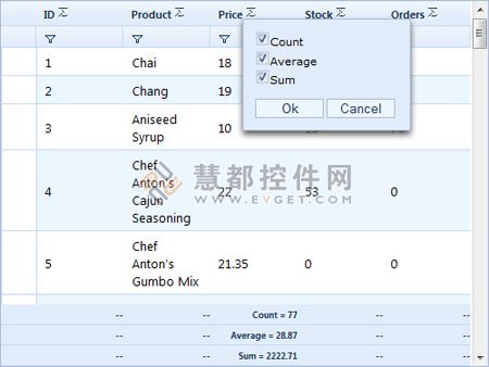 可以自定义操作显示列的计算和汇总。当导出到Microsoft Excel ,内置的公式转换为Excel公式。
