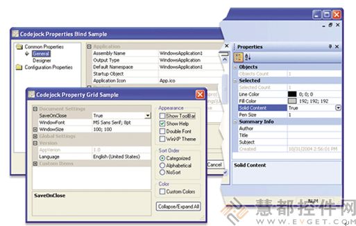 BCG control bar提供了很多子控件,如表格、日历等等,不仅如此,子控件的功能也是非常丰富的,如表格:就具有过滤、分组、模糊查询等等,不仅如此,它还支持扩展编辑器,我们可以在表格单元中放入checkbox、color编辑器等等,这些扩展功能,能够满足开发人员的各种需求,使用方便。