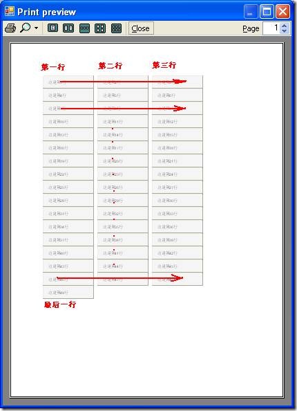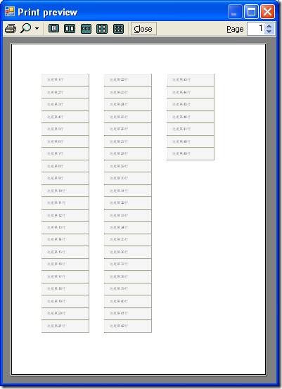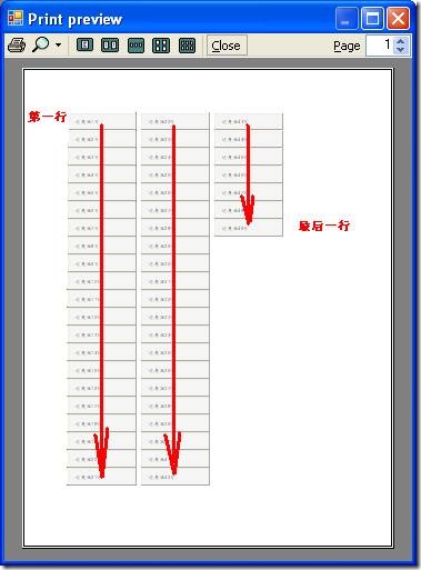 另外,上面的MultiColumns模式下,你还可以选择所有Row的安排方式是依次从上到下,还是从左到右排列的。这个属性是MultiColumnsPrintOrder,默认为DownThenOver,也就是从上到下排列,一列打印满之后再从下一列继续打印。如果改成OverThenDown,上图的效果就成这样子了: