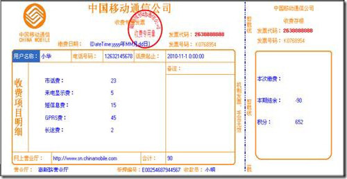 如果你已经熟悉了MultiRow的结构,你肯定知道MultiRow有三种Section,ColumnHeader,Row以及ColumnFooter,前面演示的示例只使用了Row,没有ColumnHeader和ColumnFooter,下面创建的一个模板,是一个移动通信的发票,有ColumnHeader和ColumnFooter,这个示例将会在后续的博文中详细讲述如何使用MulitRow来制作。运行起来的效果如下所示: