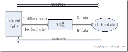 (2) 用一个TextBox做中转。将文本值赋值给中转的TextBox,然后对TextBox按Ctrl+C,从而将数据拷贝到系统的粘贴板;粘贴的过程正好反过来,先将系统粘贴板的数据,粘贴到中转用的TextBox,然后再取得TextBox中的值。