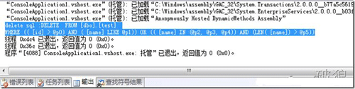 Debug.WriteLine("delete sql :" + sql);