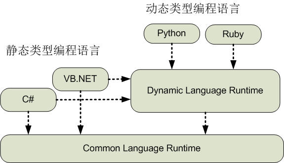 DLR运行于CLR之上,提供了一个动态语言的运行环境,从而允许Python、Ruby等动态语言编写的程序在.NET平台上运行,同时,现有的.NET静态类型编程语言,比如C#和Visual Basic,也可以利用DLR而拥有一些动态编程语言的特性。