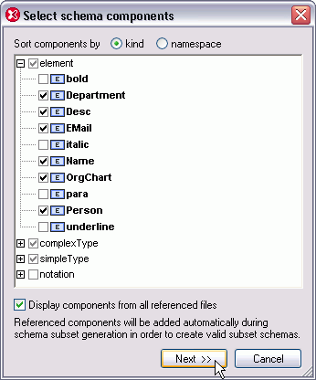 许多模式复杂,较多的类型和元素的XML都需要特定的应用程序或信息交流。或者一个较大的架构加载和验证的时间很长,所以我们需要建立子集,以满足各种需求的要素,此功能特别适合信息交流工作。