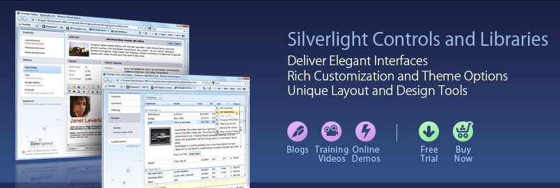 DevExpress Silverlight Controls高性价比高实用性的Silverlight用户界面控件套包,拥有大量的示例和帮助文档,开发者能够快速上手!