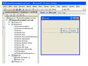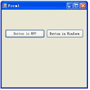 接下来演示如何使用ElementHost来显示一个WPF控件——Button,并与WinForm中Button的显示作个简单的对比(xp环境)。