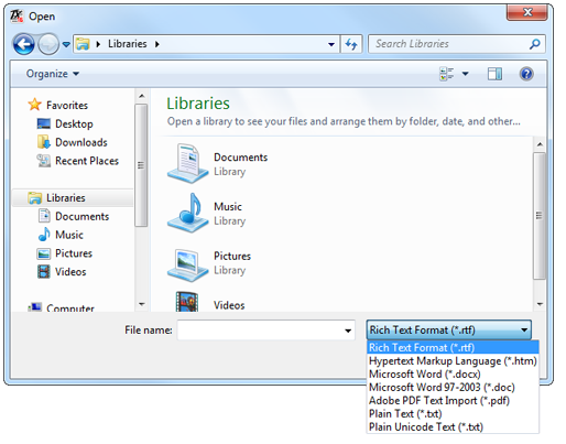 缺省状态下Load和Save方法会显示所有Text Control支持的文件类型,如果你只希望显示特定的文件类型,你可以指定将被显示的文件类型参数,Text Control支持的文件类型可以通过StreamType取得。例如,只需要显示HTML和RTF类型的文件时,可以通过以下代码来实现: