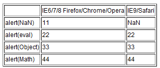 结果可以看出除了NaN在IE9(pre3)/Safari不能被重写外,其它都被重写了。这里只是列举了四个,感兴趣的可以将以上所有的The Global Object一一测试下。这里想表达的是核心JavaScript内置对象一般是可以被重写的 ,虽然没人这么干。