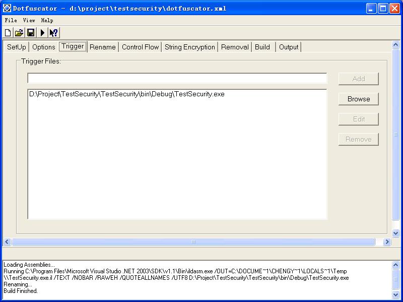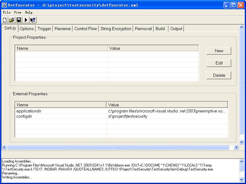 对一个或者多个.NET组件进行混淆的过程可以保存成为一个工程,工程文件就是一个XML文档,里面包含了设置的转换规则。