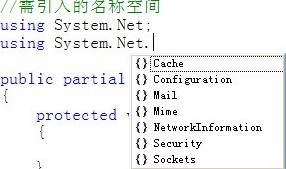 System.Net下还有很多空间,只是打出来让新手们有个更强烈的认识,本例中只用到NET这个对大的名称空间,其他的就不做解释了。