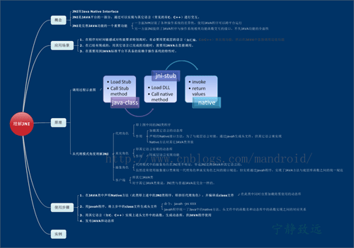 有了JAVA标准平台的支持,使JNI模式更加易于实现和使用。在此总结了下面这个知识图: