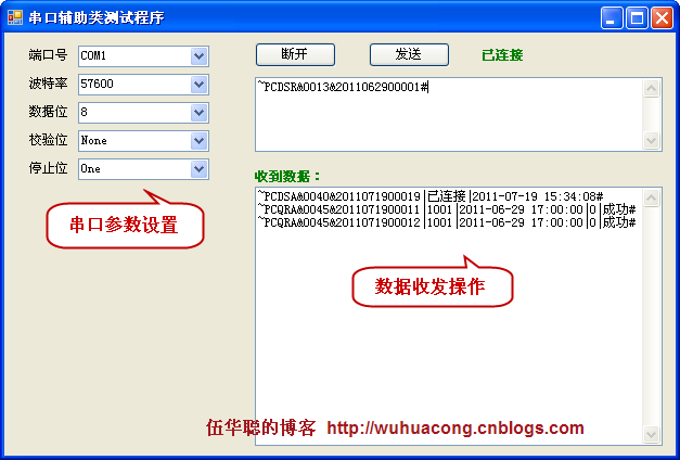 这样基本上就对串口封装的差不多了,不过还有一个重要的操作就是对串口的数据进行接收,并进行处理。由于串口获取数据不是一次性完整的获取的,可能会被拆分为好几段,因此,如何还原接收到的数据也就是一个值得注意的问题,这个最好能根据协议来确定,如我的协议基本上是以“~”符号开始,以“#”符号结束,因此我对协议数据的还原,就有可依据的准则。