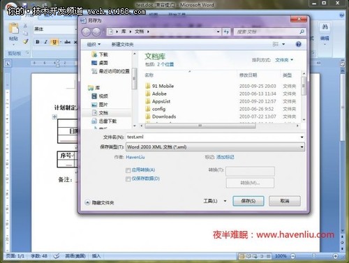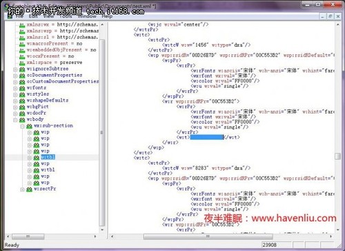 首先用office【版本要2003以上,以下的不支持xml格式】编辑文档的样式,图中红线的部分就是我要输出的部分:
