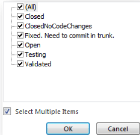 该功能为特定列提供了一个带有不同值的组合框。根据选定的项目,过滤功能可被应用到GridData控件。选择“Select Multiple Items”复选框,这样一来,就选中了多个项目。