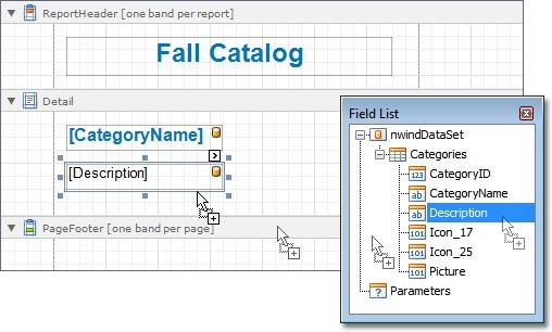 意思是报表被绑定到了数据。 接下来的步骤展示如何定制报表的布局,以及指定为报表控件提供数据的字段。