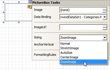 要修改图片框控件中的图像的大小显示模式,可以使用它的 XRPictureBox.Sizing 属性。 例如,把此属性值设置为 ZoomImage,则在控件内按比例调整图像的大小 (无裁剪)。