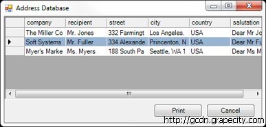 在【Address Database】窗体中添加一个【Print】按钮,当点击【Print】按钮时,程序会将数据源中的记录合并到文档中并进行打印操作:
