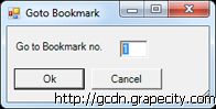 在文档中输入一些文本并插入一些书签,然后选择【Go To...】菜单,此时会弹出一个对话框,可以在对话框中输入书签的编号,如果该书签存在点击【OK】按钮会自动跳转到书签所在的位置,实现代码如下: