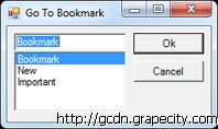通过以上操作,我们创建了书签并指定了书签的名字。下面将在【Goto Bookmark】对话框中显示所有书签的名字,实现代码如下: