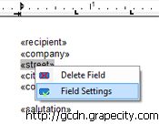 从MergeField菜单中选择Edit..菜单项,打开合并域字段的编辑对话框: