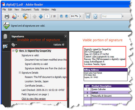 在专业版的ActiveReports里,对PDF格式的数据输出又有了增强功能。现在用户可以将不可见的数字签名或者可见的文字图案加入到报表里。通过16种属性对数字签名进行个性化设置,用数字签名验证报表作者,还可通过Certification Level 来设定用户访问权限。用时间印章功能建立第三方授权版本。这些新功能完全和Adobe的新安全机制兼容。