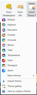 您可以随时在“更多主题”子菜单下找到之前的主题。关于自定义主题要记住的一件事是它们总是建立在默认主题之上。例如,如果您创建了自己的自定义主题,只设置了数据颜色而没有其他内容,如果您将该主题导入到应用了新默认值的报表中,默认情况下它仍会展开/展开,背景为视觉效果等等,因此与将其导入具有旧默认主题的报表相比,它可能看起来有所不同。如果你想让你的主题看起来和以前完全一样,你可以先在主题下拉菜单中将主题设置为“Classic”,这样默认的主题就有了旧的设置,然后导入你的自定义主题。