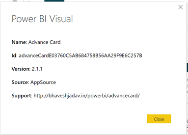 您将能够看到诸如visual的id、版本号、从何处获得visual以及支持信息等内容。