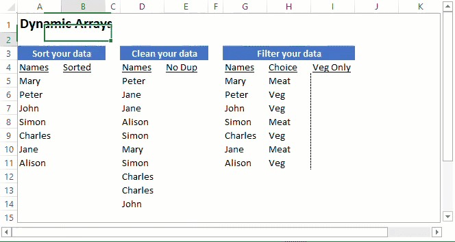 Excel 2019 推出了动态数组函数,用于简化复杂计算公式:使用动态数组,返回值将自动“输出”到相邻单元格中(未使用的)。用户只需编写一个简单的公式,而不是编写复杂的数组公式就可解决多单元格问题。