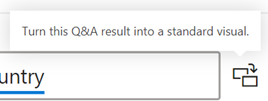 作为一个报告的作者,您也有能力使用这个可视化的编辑工具,并将Q&A可视化转换成你所看到的特定的可视化,如果您想坚持使用那个可视化。只需单击输入框旁边的图标。