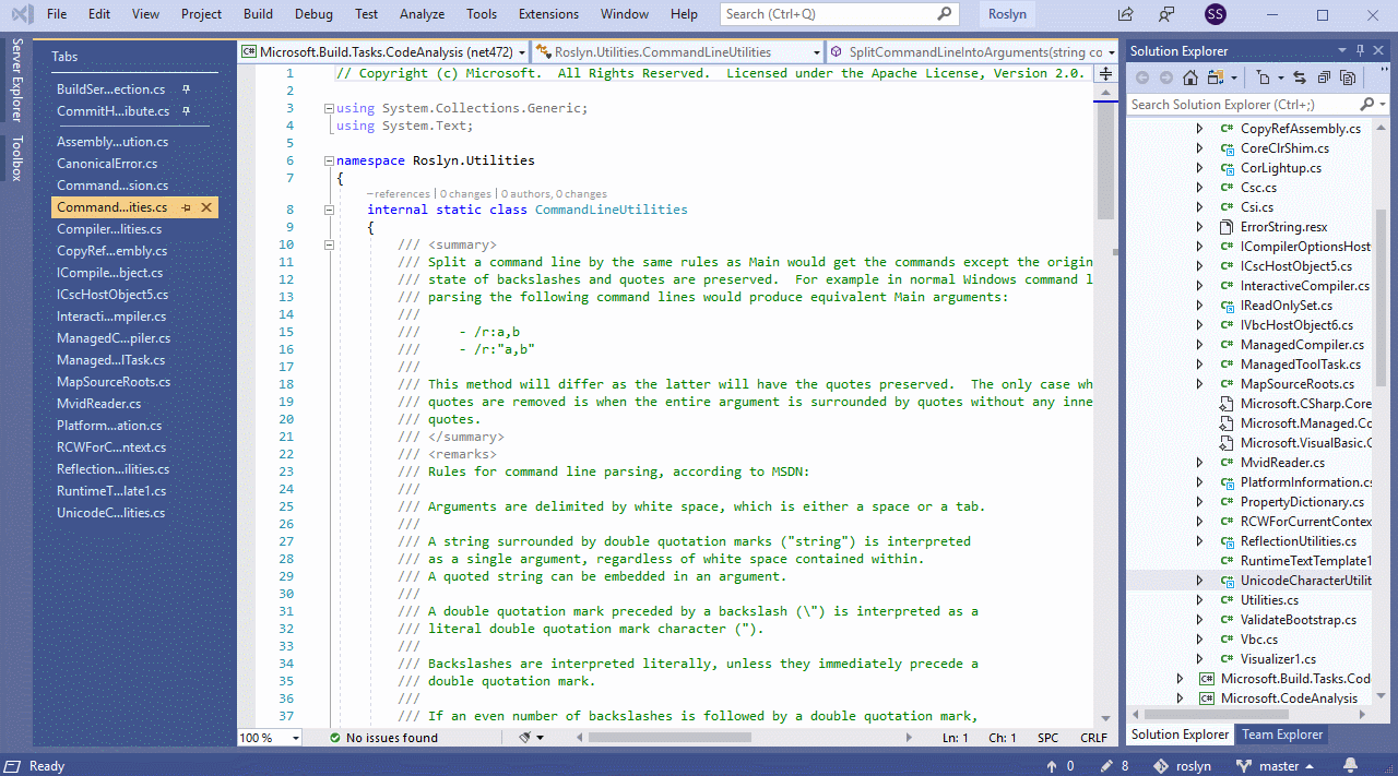 垂直文档选项卡的第一个预览版将作为Visual Studio v16.4预览2的一部分提供。垂直选项卡使您可以更好地利用水平屏幕空间,同时又为代码提供了更多垂直空间。它使您可以查看更多打开的文档选项卡,并提供一种直观且灵活的排序方式。