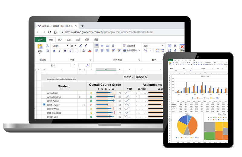 SpreadJS提供了类似Excel的表格编辑器(SpreadJS在线表格编辑器),除UI与Excel高度类似外,还完全兼容Excel的450种公式、图表、形状和迷你图,并提供数据筛选、排序、分组、批注、切片器和更易于开发使用的自定义扩展能力,实现了公式的完全自定义。用户通过SpreadJS,可轻松设计模板,节约应用程序开发所需的时间和精力。>>>体验SpreadJS在线表格编辑器