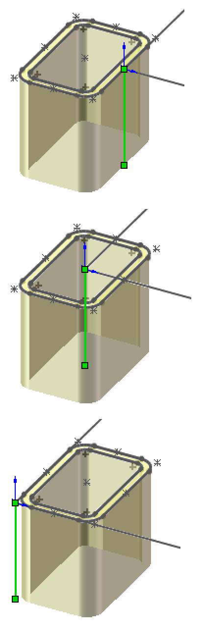 示例: 同一个轮廓,选择了三个不同穿透点。