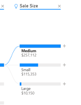 其他视觉效果相比,分解树中一个有趣的区别是,您可以在explain by字段中动态地选择想要查看的字段以及查看的顺序。这意味着您将拥有的初始视图只是数值,旁边是一个小“ +”号。
