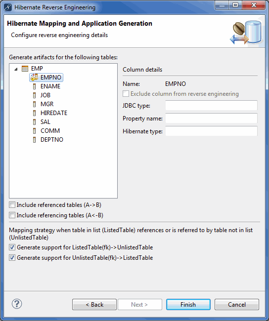 单击两个“Include Referenced Tables”复选框,使向导在反向工程过程中包括引用表。单击完成。