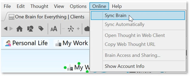 1、打开你想要同步的Brain。点击菜单栏中的云图标,或者点击在线菜单 > Sync Brain命令。
