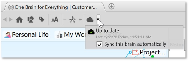 一旦Brain被同步,你的Brain将被自动设置为自动同步。若要关闭此功能,请单击工具栏中Cloud图标旁边的同步状态按钮。