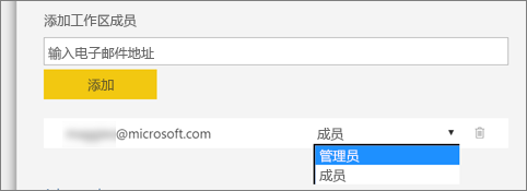 创建经典工作区时,将创建关联的基础Office 365组(所有工作区管理操作都在Office 365中进行),你可以以成员或管理员身份将同事添加到这些工作区。在工作区中,所有人可协作处理计划向其他受众发布的仪表板、报表和其他项目。注意:添加到工作区中的每个人都需要Power BI Pro许可证。
