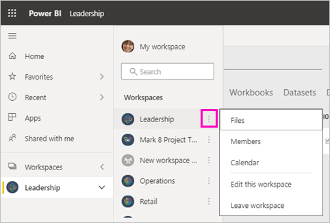 Power BI创建工作区并将其打开。它显示在你作为成员的工作区的列表中。作为管理员,你可以选择“更多选项”(…) 返回并进行更改,添加新成员或更改人员权限 。