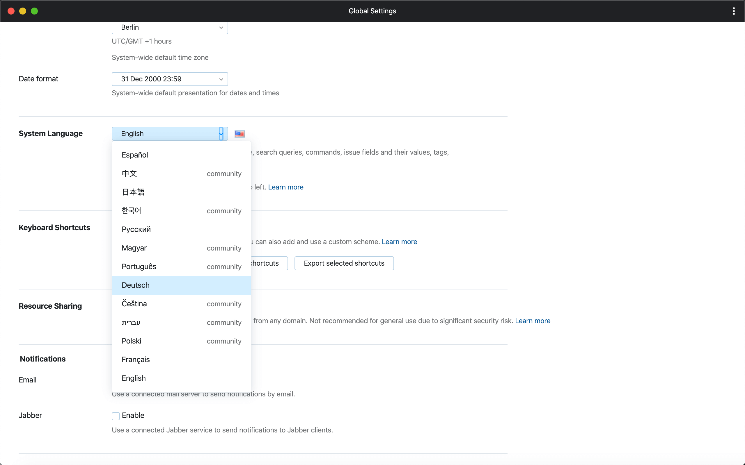 我们已启用该选项,以选择基于社区的本地化支持的其他语言。开始使用简体中文,希伯来语,匈牙利语和韩语的YouTrack。这些语言选项在全局级别可用,也可以按用户的喜好使用。