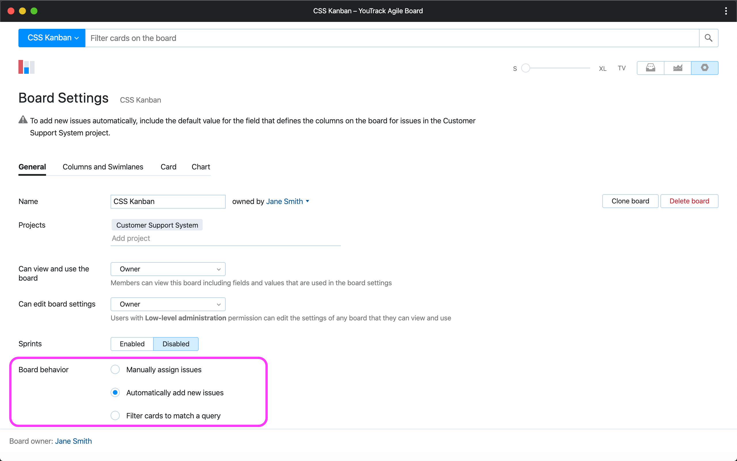 自动添加新问题的选项现在可用于不使用冲刺的敏捷板。这有助于遵循看板流程的团队将所有问题集中管理。