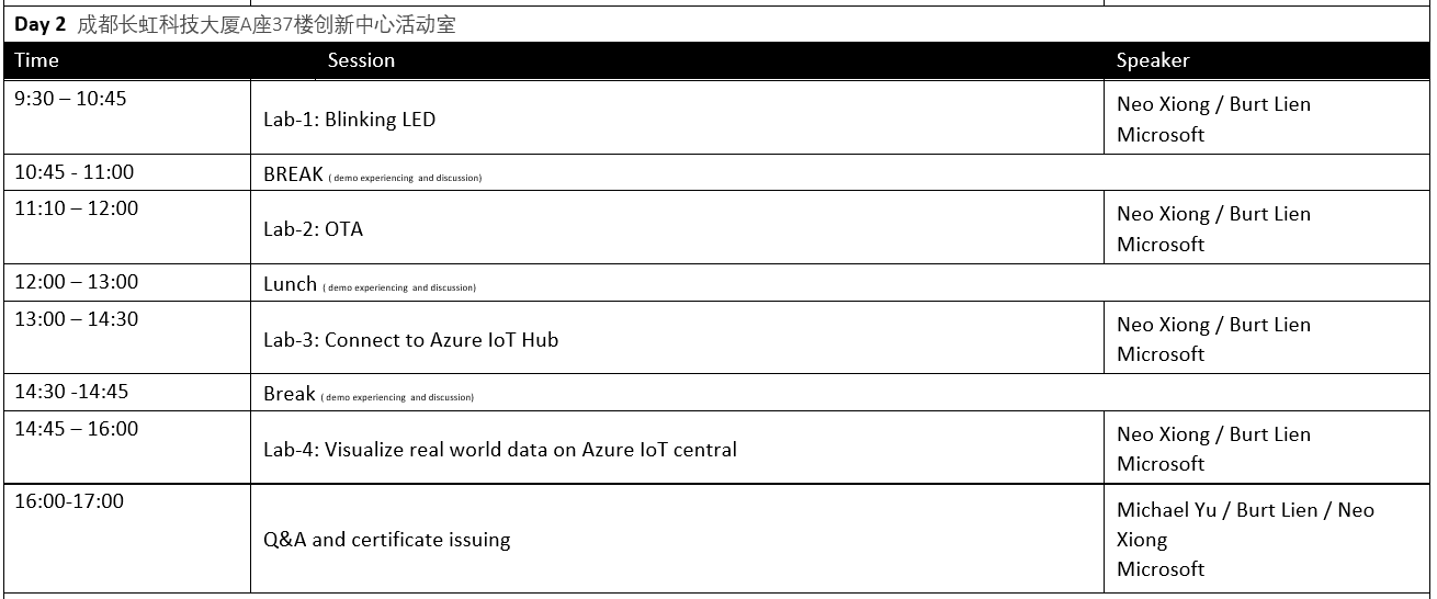 研讨会第一天,我们将详细介绍物联网安全的发展趋势和标准演进、Azure Sphere 以及其合作伙伴生态;在会议第二天将由微软技术专家协助您进行动手实验部分。参加为期2天的完整培训的工程师将获得 Azure Sphere 认证。