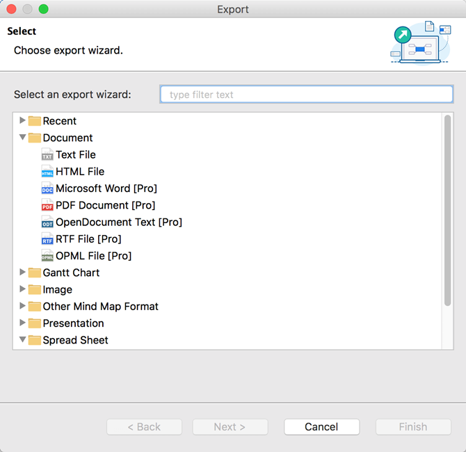 XMind使您能够将您的工作成果导出为多达20种文件格式,例如Word,PowerPoint,Excel,PDF,MS Project,RTF,HTML,纯文本,PNG,JPEG,GIF,BMP,SVG等。然后您的同事可以直接查看导出的文件而无需安装其他软件。