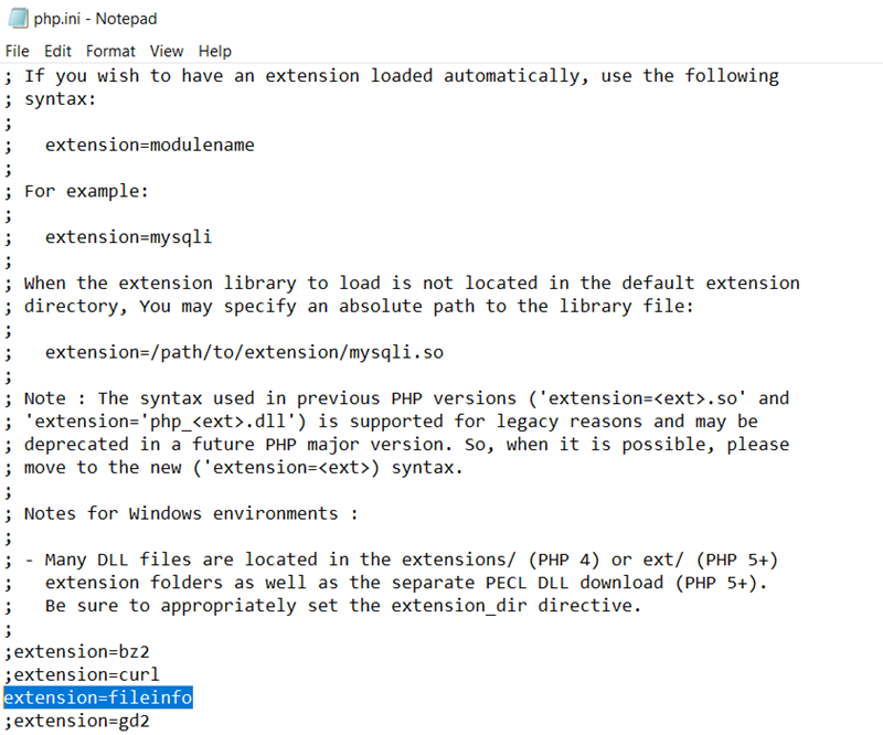 解决方法是在php.ini文件中启用“ extension = fileinfo ”。