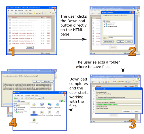 File Downloader™ is unique mass download solution for your sites. It enables end-users to download multiple files from your site with just few clicks. They click a button integrated into your HTML page (ActiveX control), select the destination folder, and start download. Users can control the list of files to download, observe a progress of download process, and even skip certain files during download. When download completes, users can see a log file.
