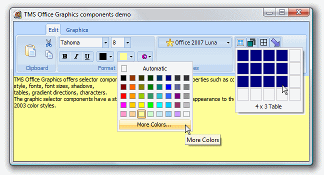 TMS Advanced Office Graphics Control Pack : Office 2007 / Office 2003 style selector components.