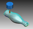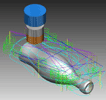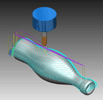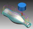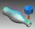 和5-Axis技术一起使用,3-Axis刀具轨迹可以容易的被转换为效率更高,表面光洁度更好的5-Axis刀具轨迹。此方法可以保持最佳的兼容点,并且允许短刀具在部件深加工时使用向远离模型的方向倾斜的方式来避免碰撞。
