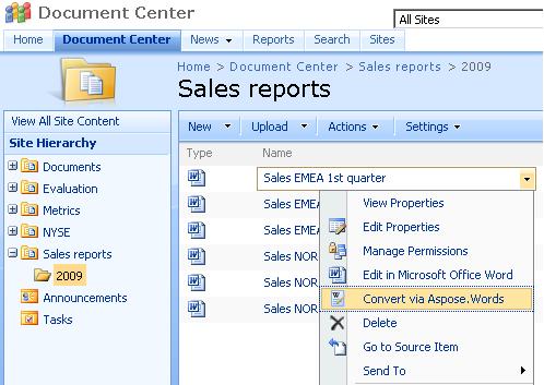 Aspose.Words for SharePoint is a unique solution supporting document conversion that makes it possible to convert and combine documents within the Microsoft SharePoint applications and support multiple document formats with high fidelity.