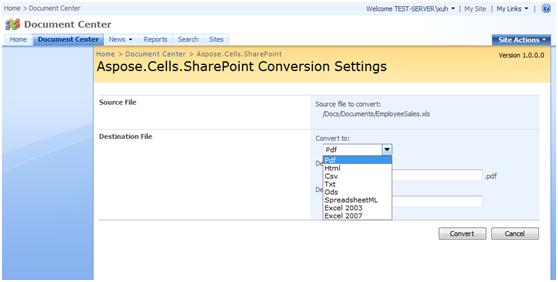 Aspose.Cells for SharePoint is a flexible solution supporting spreadsheet conversion that makes it possible to convert MS Excel documents within the Microsoft SharePoint applications and support multiple document formats.