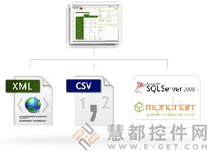 可快速将来自OLAP立方块、SQL数据库或静态CSF文件的复杂数据显示为紧凑的概括性可视化报告,与Excel的数据透视表和图表类似